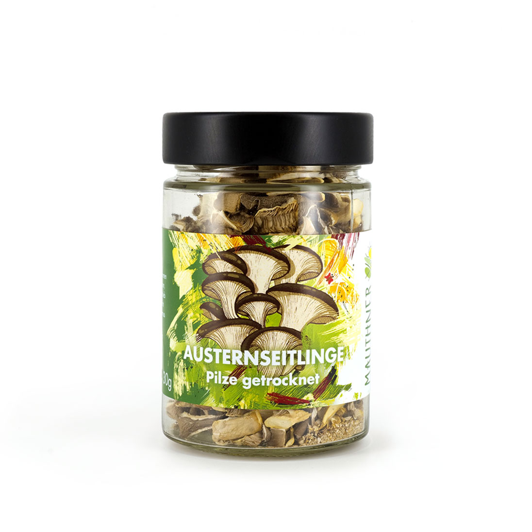 Die schonend getrockneten Pilze in lauwarmen Wasser 20-30 min. quellen lassen, anschließend durch ein Küchensieb abgießen. Die Pilze wie gewohnt weiterverarbeiten, vor dem Genuss gut erhitzen. Wussten Sie, in 30g getrockneten Pilzen stecken rund 300g frische Pilze. Hervorragend geeignet als Fleischersatz. Vor Wärme und Licht geschützt trocken lagern.
